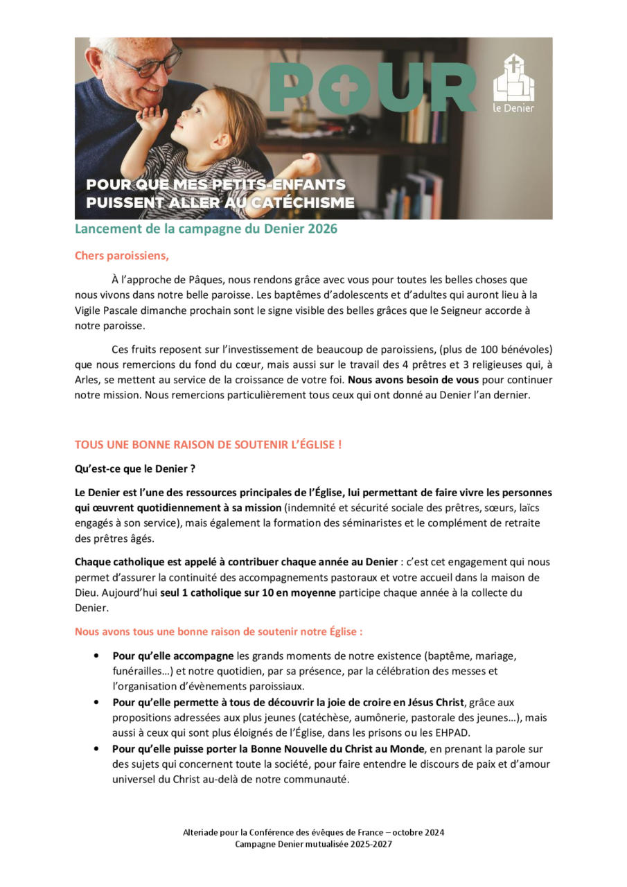 Comme chaque deuxième dimanche du mois, la paroisse propose un repas paroissial ce dimanche 12 avril 2026 à partir de 12h45, au Carmel, ouvert à tous. Chacun est invité à apporter un plat salé ou Lire la suite